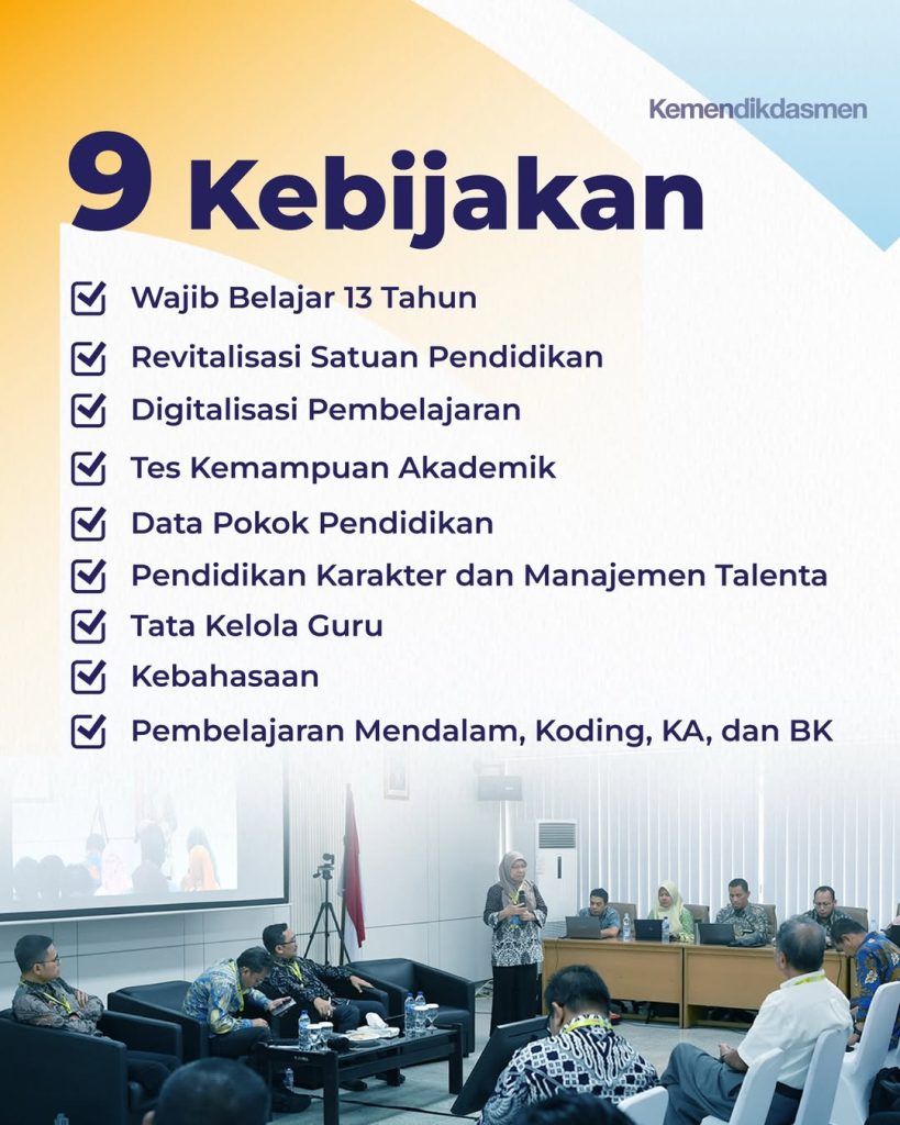 Sebanyak 906 peserta yang terdiri atas kepala dinas pendidikan se-Indonesia, organisasi profesi dan kemasyarakatan, serta tim dari Kemendikdasmen sendiri akan membahas 9 kebijakan prioritas pendidikan nasional. Pantau terus informasi selengkapnya di media sosial Kemendikdasmen, ya! #KemendikdasmenRAMAH #PendidikanBermutuuntukSemua