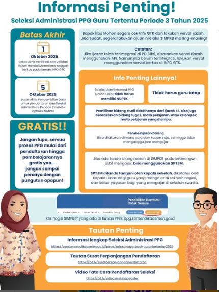 Batas Akhir Seleksi Administrasi PPG Guru Tertentu Periode 3 Tahun 2025