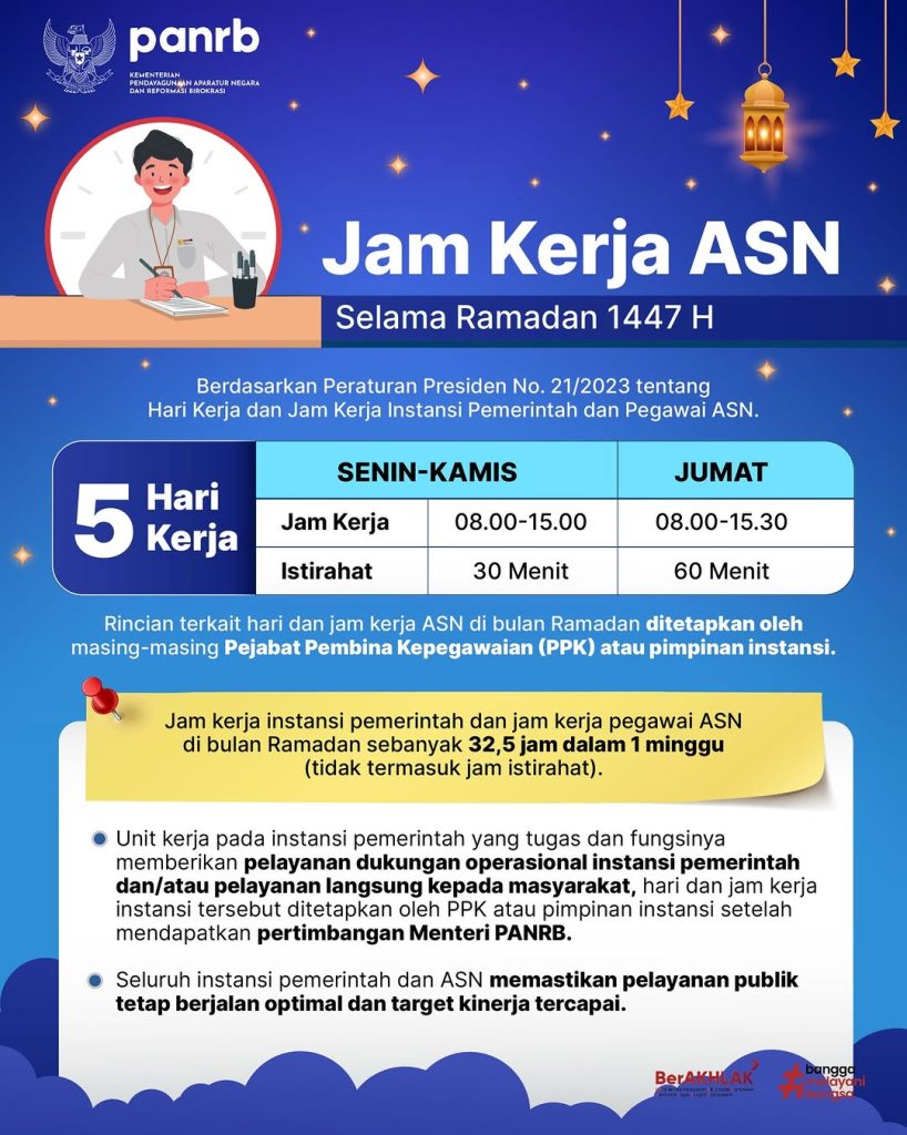▪️ Jam kerja Pegawai pada buIan Ramadan 1447 H ditetapkan