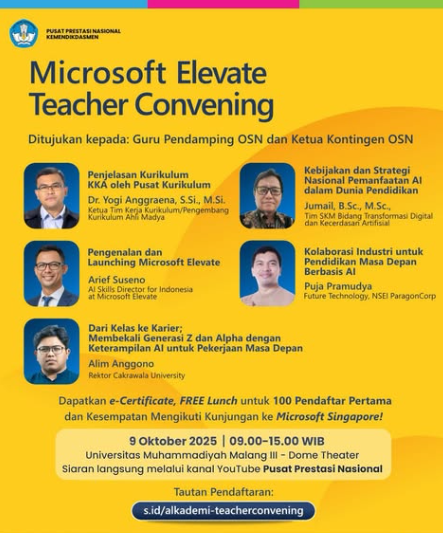 Jangan lewatkan Microsoft Elevate Teacher Convening, ruang eksklusif untuk membahas masa depan pendidikan berbasis AI & kurikulum KKA langsung dari para ahli!