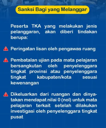 Harap diperhatikan ya guys agar Kalian tidak melakukan hal-hal yang disebutkan di jenis-jenis pelanggaran TKA tersebut ya