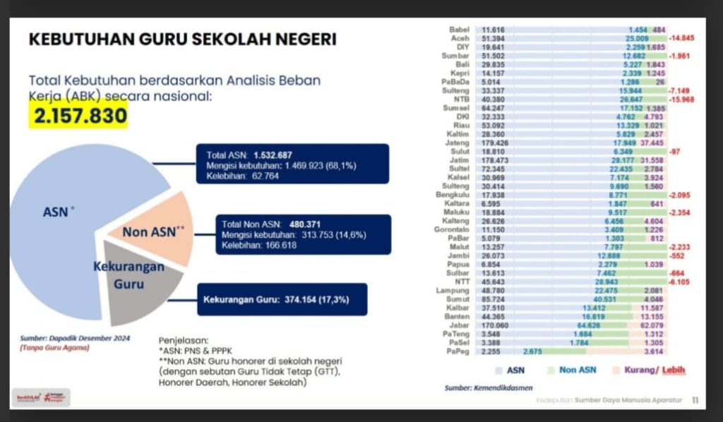 Indonesia kekurangan 374.154 guru tetapi APBD dibatasi hanya 30% untuk belanja pegawai (termasuk PPPK Guru).