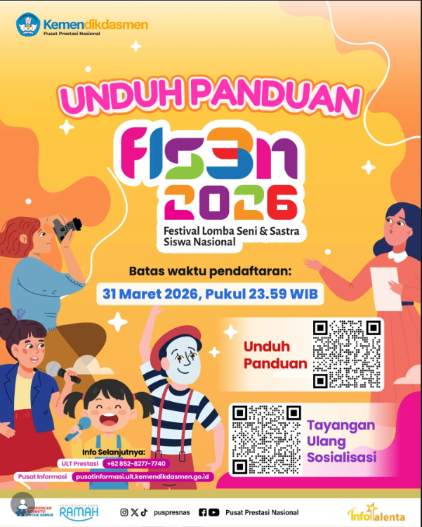 Pendaftaran Festival Lomba Seni dan Sastra Siswa Nasional (FLS3N) Jenjang Pendidikan Dasar, Pendidikan Menengah, dan Pendidikan Khusus dibuka hingga 31 Maret 2026! 🎨ðŸŽ