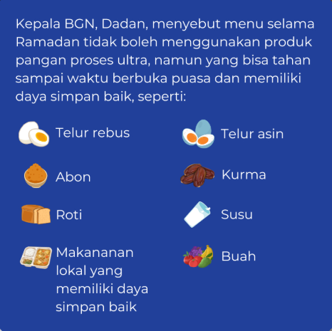 Dengan penyesuaian ini, BGN pastikan MBG tetap berjalan optimal, aman, dan berkelanjutan selama puasa Ramadan 2026.⁣