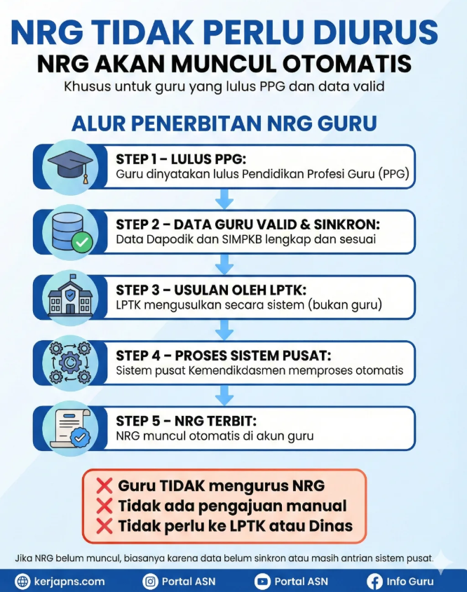 NRG akan muncul otomatis setelah guru lulus PPG dan data valid.