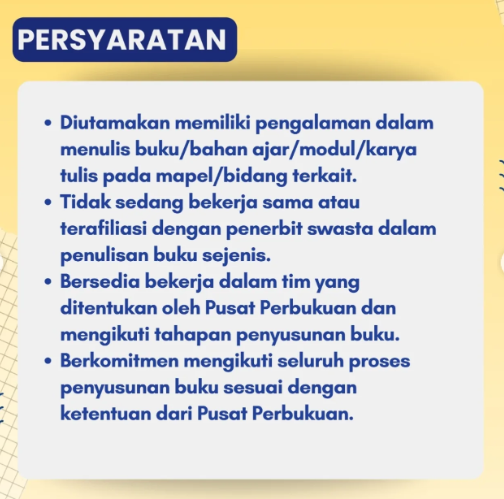 Pusat Perbukuan akan melaksanakan seleksi dan membuka pendaftaran untuk Calon Penulis Buku Teks Utama Pendidikan Khusus Mata Pelajaran Vokasional Fase D Tahun 2026 untuk 10 mata pelajaran berikut.