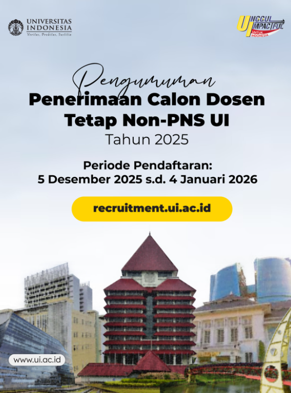 Dalam rangka mewujudkan SDM berdaya saing global, Universitas Indonesia membuka kesempatan bagi Warga Negara Indonesia untuk melamar sebagai Calon Dosen Tetap Non-PNS Tahun 2025.
