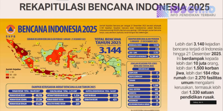 Guru dan Tenaga Kependidikan (GTK) memiliki posisi kunci dalam memastikan sekolah tetap menjadi lingkungan yang aman, inklusif, dan mendukung bagi anak-anak, terutama setelah terjadi bencana. Tidak hanya menjaga kelangsungan proses belajar-mengajar, GTK juga berperan penting dalam pemulihan psikososial peserta didik serta penguatan ketangguhan satuan pendidikan. Peran strategis tersebut menjadi sorotan dalam Webinar Satuan Pendidikan Aman Bencana (SPAB) Seri 8 bertema “Peran GTK dalam Pemulihan Pascabencana dan Penguatan Satuan Pendidikan” yang disiarkan melalui kanal YouTube Direktorat Jenderal Guru, Tenaga Kependidikan, dan Pendidikan Guru (Ditjen GTKPG), Senin (22/12).