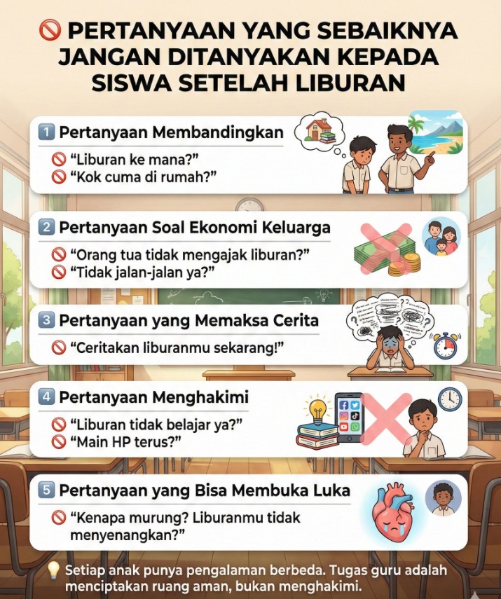 Karena itu, ada pertanyaan-pertanyaan yang sebaiknya dihindari setelah liburan sekolah.