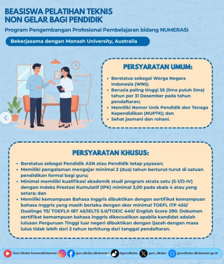 Beasiswa Pelatihan Teknis Non Gelar bagi Pendidik bekerja sama dengan Monash University, Australia.