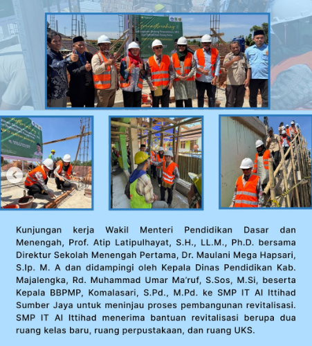 Program Revitalisasi Satuan Pendidikan sedang berjalan. Wamendikdasmen bersama Direktur SMP yang didampingi oleh Kepala Dinas Kab. Majalengka beserta Kepala BBPM melakukan kunjungan ke SMP IT Al Ittihad Sumberjaya.