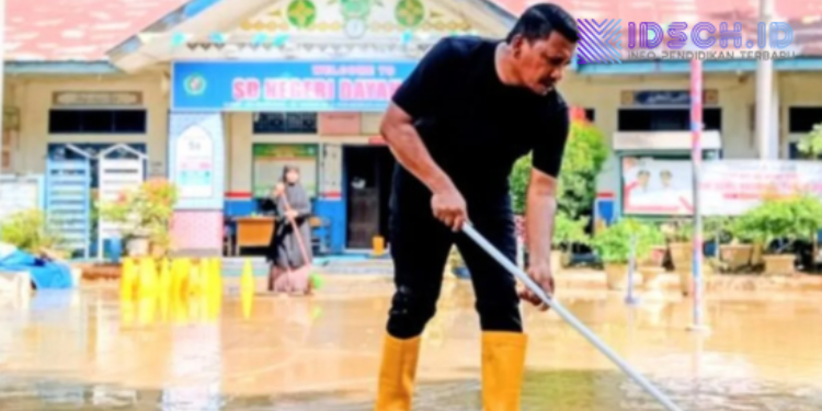 Sehari sebelum siswa kembali ke ruang kelas, halaman sekolah masih dipenuhi lumpur sisa hujan deras. Namun para guru tidak menunggu bantuan atau kondisi benar-benar pulih. Dengan sapu, cangkul kecil, dan ember, mereka bergotong royong membersihkan lingkungan sekolah sejak pagi. Bagi para guru, membersihkan sekolah bukan sekadar pekerjaan tambahan, melainkan bagian dari pendidikan itu sendiri.