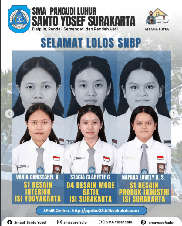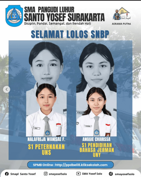 Selamat Siswa SMA Pangudi Luhur Santo Yosef Surakarta yang Lolos SNPB