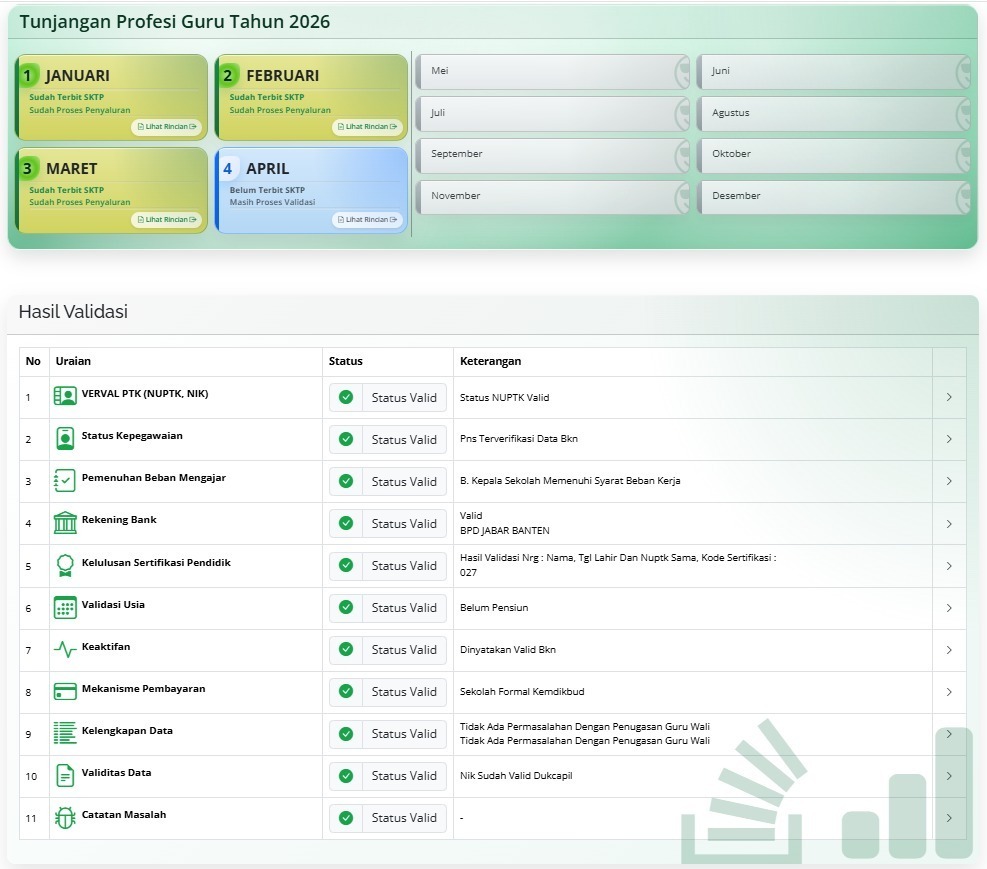 Status SKTPG April 2026 masih dalam proses sinkronisasi dan validasi, diperkirakan akan terbit pada minggu kedua April.
