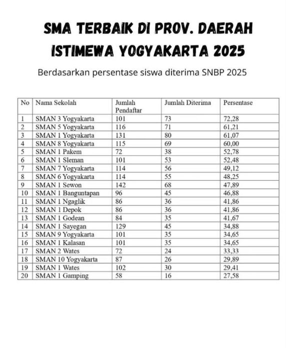 SMA Negeri Terbaik di Yogyakarta, Cek Disini