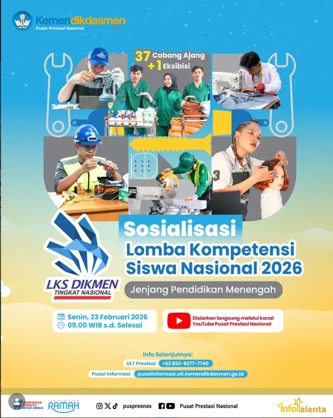 Tags: beritapendidikan terkiniinfo pendidikan terkiniLomba Kompetensi Siswa Nasional Jenjang Pendidikan Menengah 2026Sosialisasi Lomba Kompetensi Siswa NasionalSosialisasi Lomba Kompetensi Siswa Nasional Jenjang Pendidikan Menengah 2026