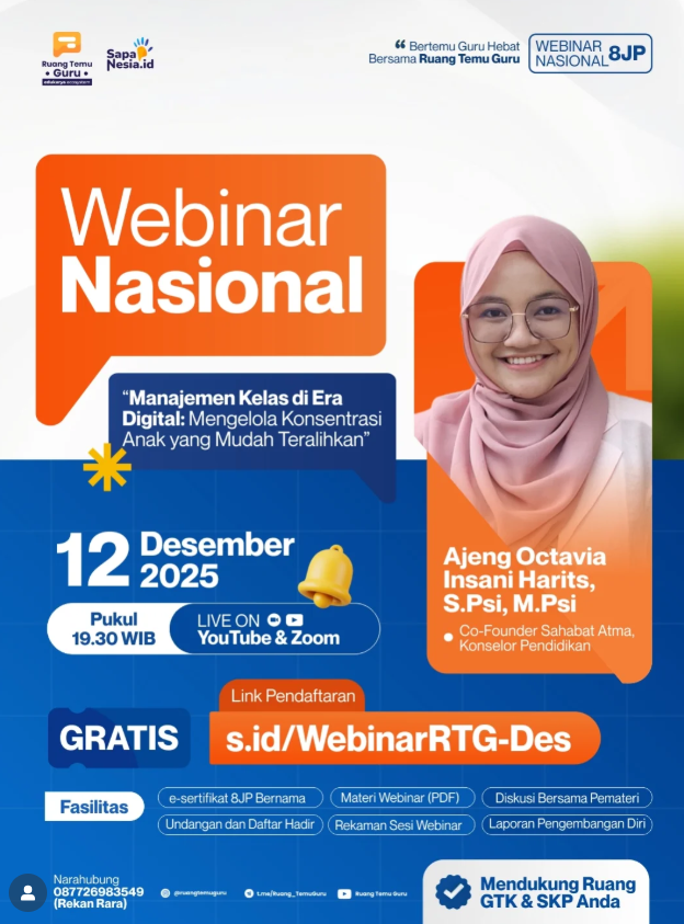 Yuk Ikuti webinar “Manajemen Kelas di Era Digital: Mengelola Konsentrasi Anak yang Mudah Teralihkan” dan dapatkan teknik siap pakai yang langsung bisa diterapkan di sekolah Anda!