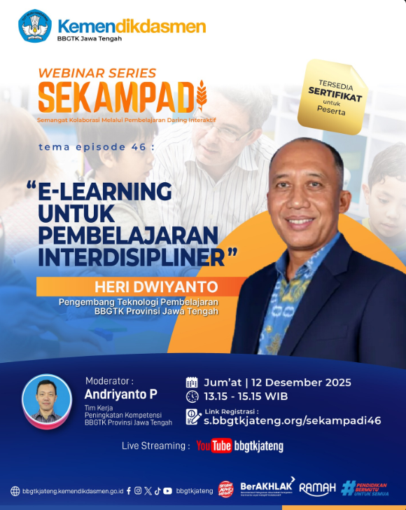 Melalui webinar ini, kita akan membongkar bagaimana platform E-Learning dapat menjadi solusi cerdas dan praktis untuk merancang pengalaman belajar yang terhubung, kolaboratif, dan kontekstual.