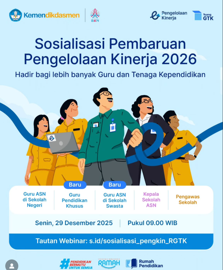 Mari hadiri *Sosialisasi Pembaruan Pengelolaan Kinerja 2026* pada *29 Desember 2025 pukul 09.00 WIB.*
