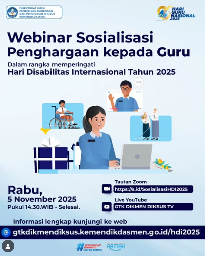 Webinar “Sosialisasi Penghargaan kepada Guru Dalam Rangka Memperingati Hari Disabilitas Internasional Tahun 2025”